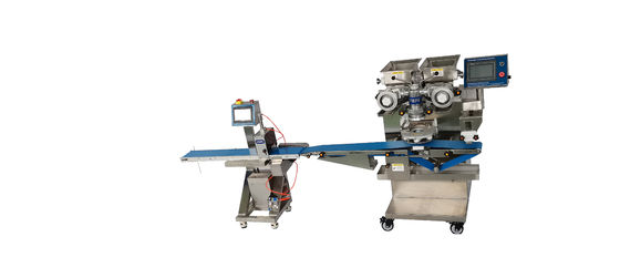 Ένας δεύτερος καταθέτης προσθέτει τομαλακό στρώμα πλήρωσης(π.χ. καραμέλα, βούτυρο καρυδιών ή ζύμη φρούτων).