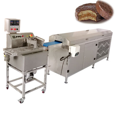 Small Commercial tunnel cooling chocolate enrobing machine consists of small chocolate enrober and 3P Chocolate cooling tunnel. The Commercial type chocolate enrobing machine with cooling tunnel is designed for making chocolate coated products, such as protein bar, energy bar, cereal bar, granola bars, energy ball, date ball, truffles, cookies, biscuits, crackers, pies, cakes, breads, wafer sticks, egg rolls, fruits, nuts, candy bars, donuts and so on.